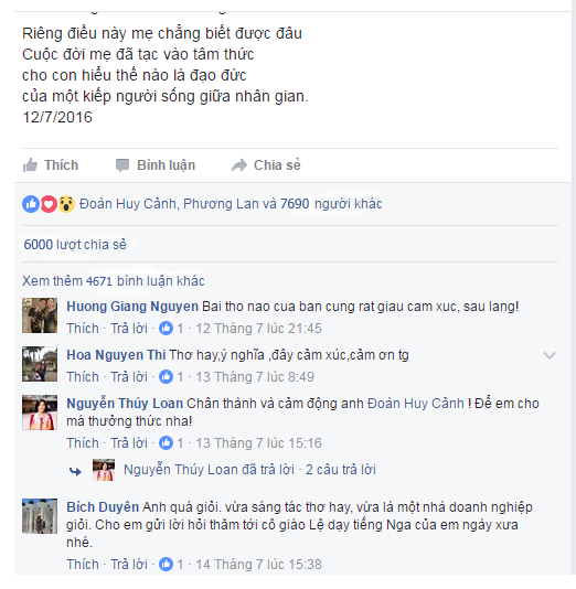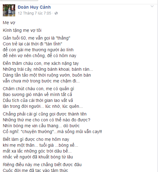 Bài thơ đã được chia sẻ rất nhiều trong thời gian qua